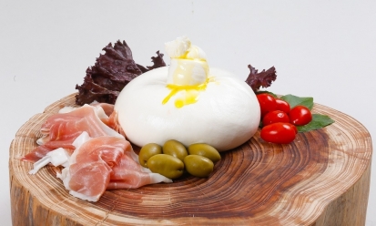 “Na essência, a burrata é uma bolsa de mozarela recheada com fios de queijo, misturados ao creme de leite”, conta Renata. “A burrata começa hoje a ser uma tendência mundial, porém nenhum lugar no Brasil a produz de forma legítima como na Itália. Isso é reflexo de testes que mostram um uso excessivo de creme de leite ou, equivocadamente, de mozarela de búfala”.